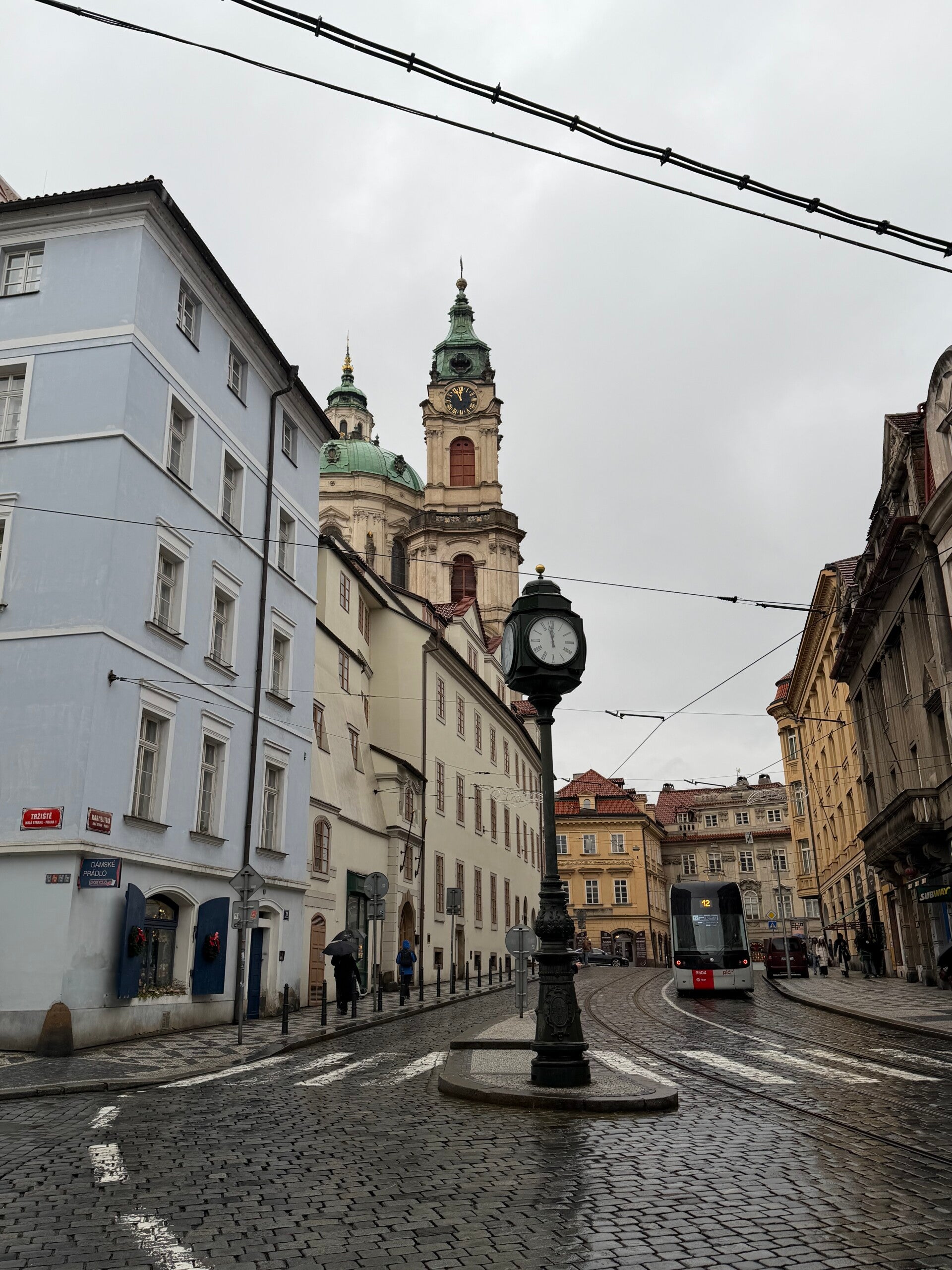 Via di metro: scendiamo sotto terra, poi sotto il fiume e riemergiamo nel quartiere di Malá Strana, la “Città Piccola”, tutta palazzi liberty, facciate pastello e quell’atmosfera elegante che ti fa sentire dentro a un romanzo dell’Ottocento.