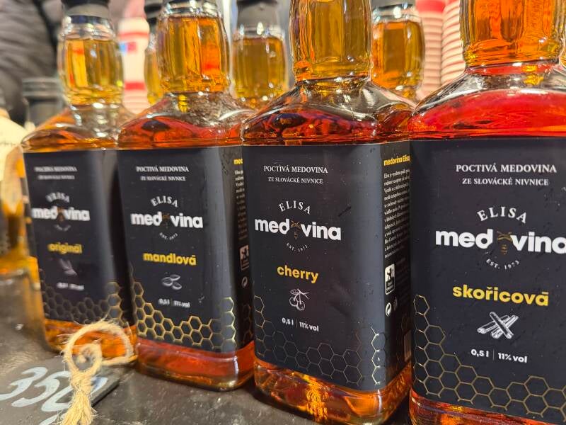 Tra le bancarelle troviamo il tradizionale liquore al miele (medovina) e ovviamente facciamo l’assaggio.
